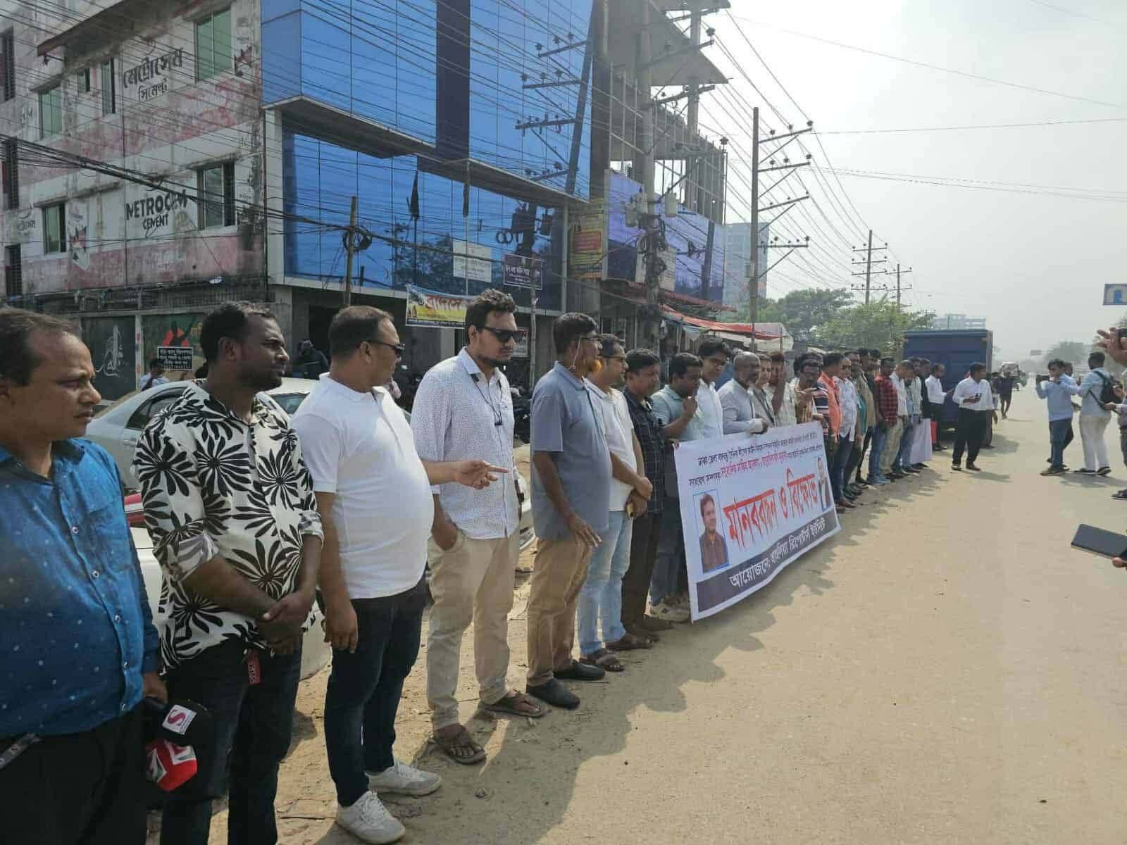 আশুলিয়া দুই সাংবাদিকের বিরুদ্ধে আ.লীগ নেত্রীর দায়ের করা মিথ্যে মামলার প্রতিবাদে মানববন্ধন।